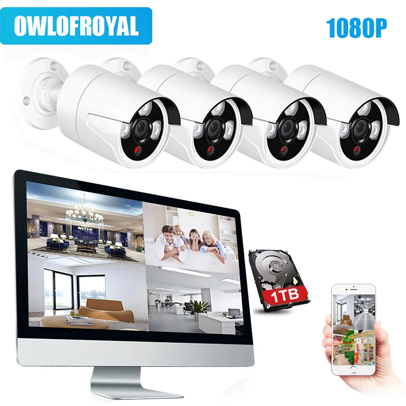 REVIEW TOP SELLER 1080P 4CH Wireless NVR Kit 13"LCD Monitor 4PCS 2MP Wifi IP Camera Outdoor Waterproof CCTV System P2
