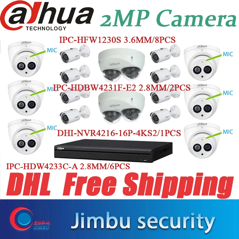 BEST QUALITY Dahua kit 2MP IP camera system NVR cctv NVR4216-16P-4KS2&2MP security cam IPC-HDW4233C-A/6pcs IPC-H