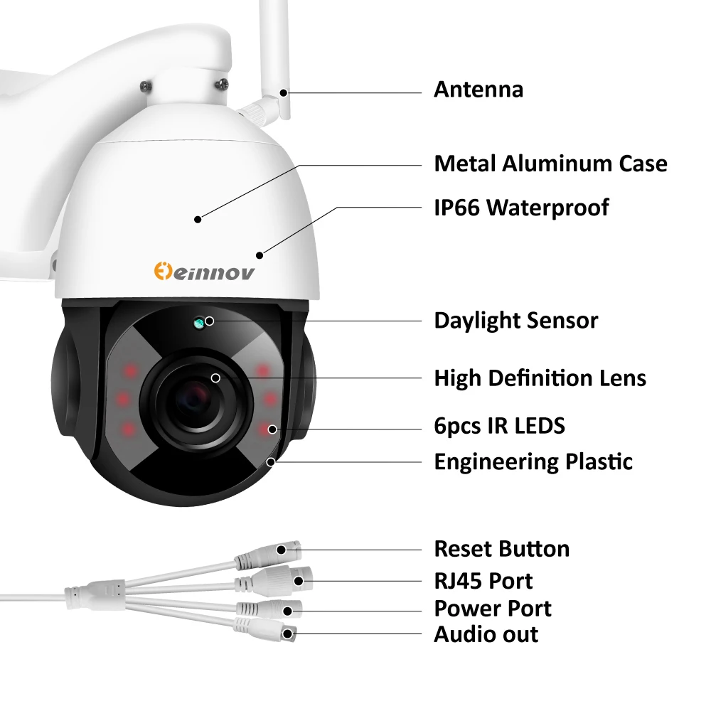 Hot Sale Einnov 30X Zoom Video Surveillance Camera 1080P HD PTZ IP Camera Wifi Outdoor Home Wireless Securit