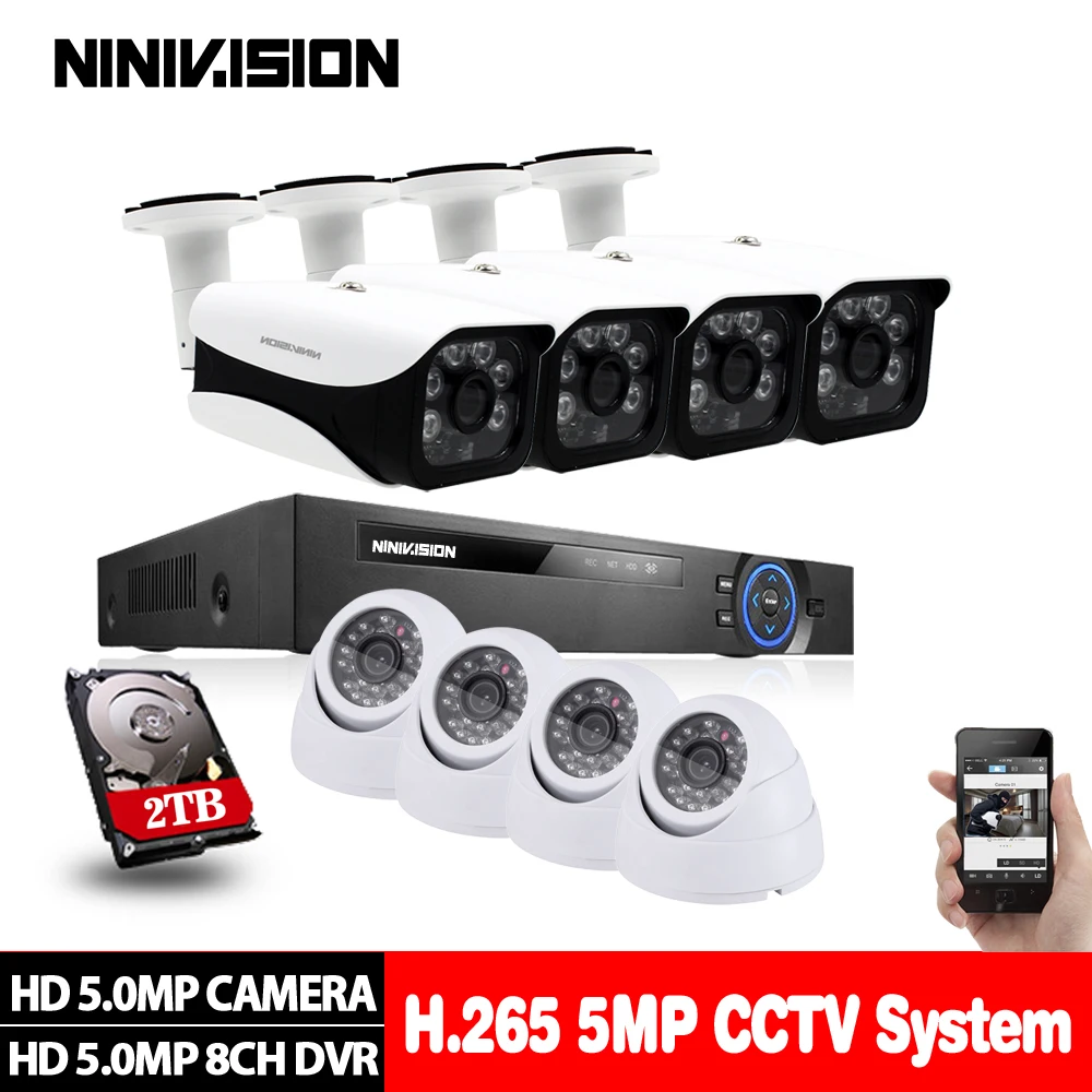 HIGH QUALITY NINIVISION 8CH 5MP HDMI AHD NVR Kit CCTV Security System 5.0MP indoor Outdoor Bullet Dome Camera Vi