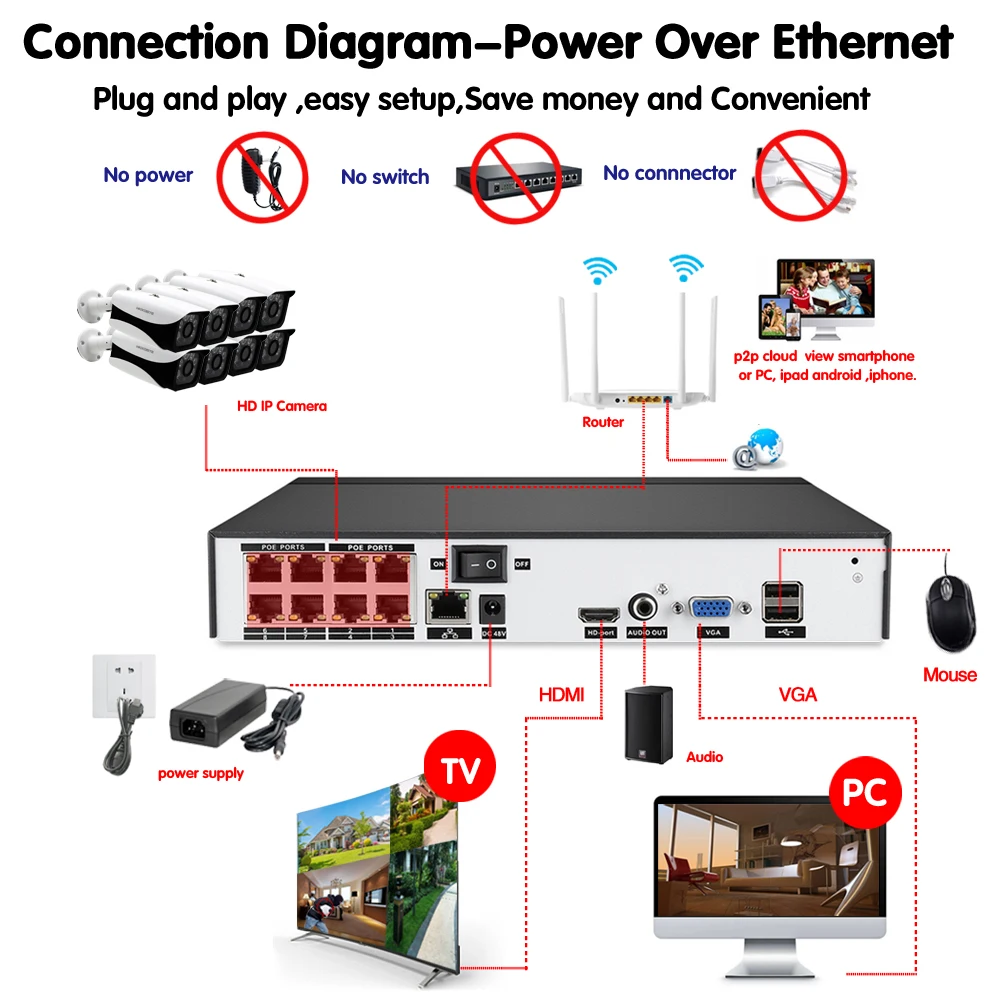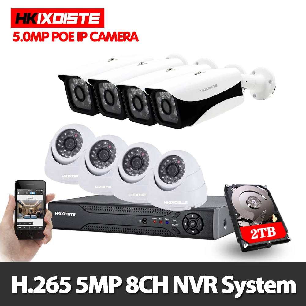 HKIXDISTE 8ch 5mp 1080p CCTV Camera System PoE H.265 CCTV Camera System 5.0mp Surveillance Kit PoE