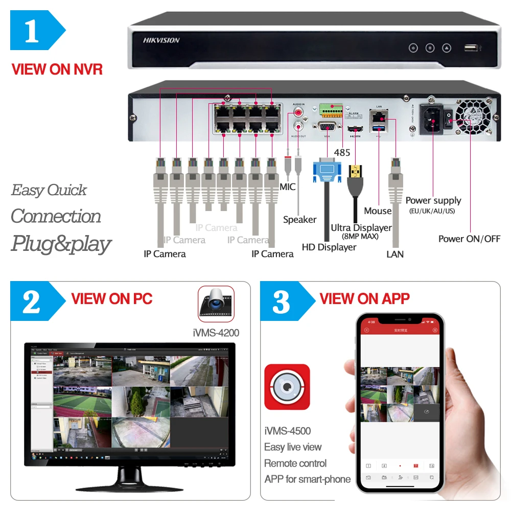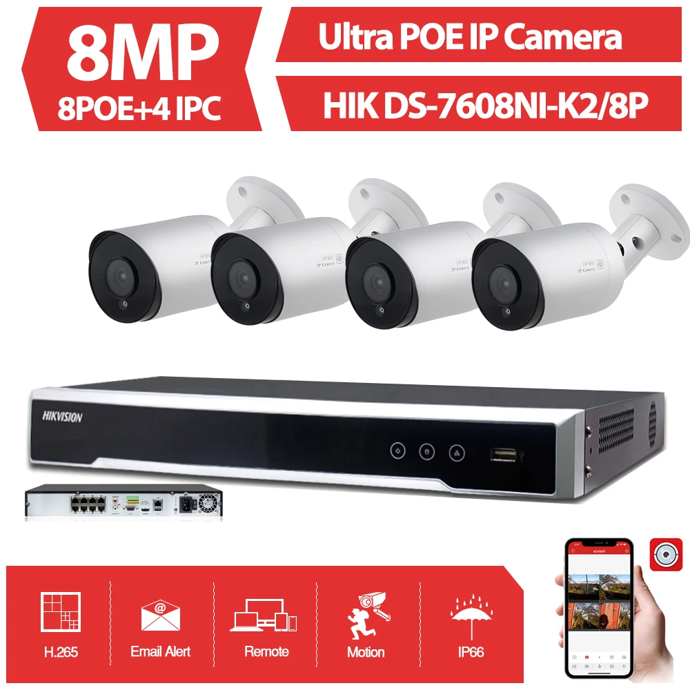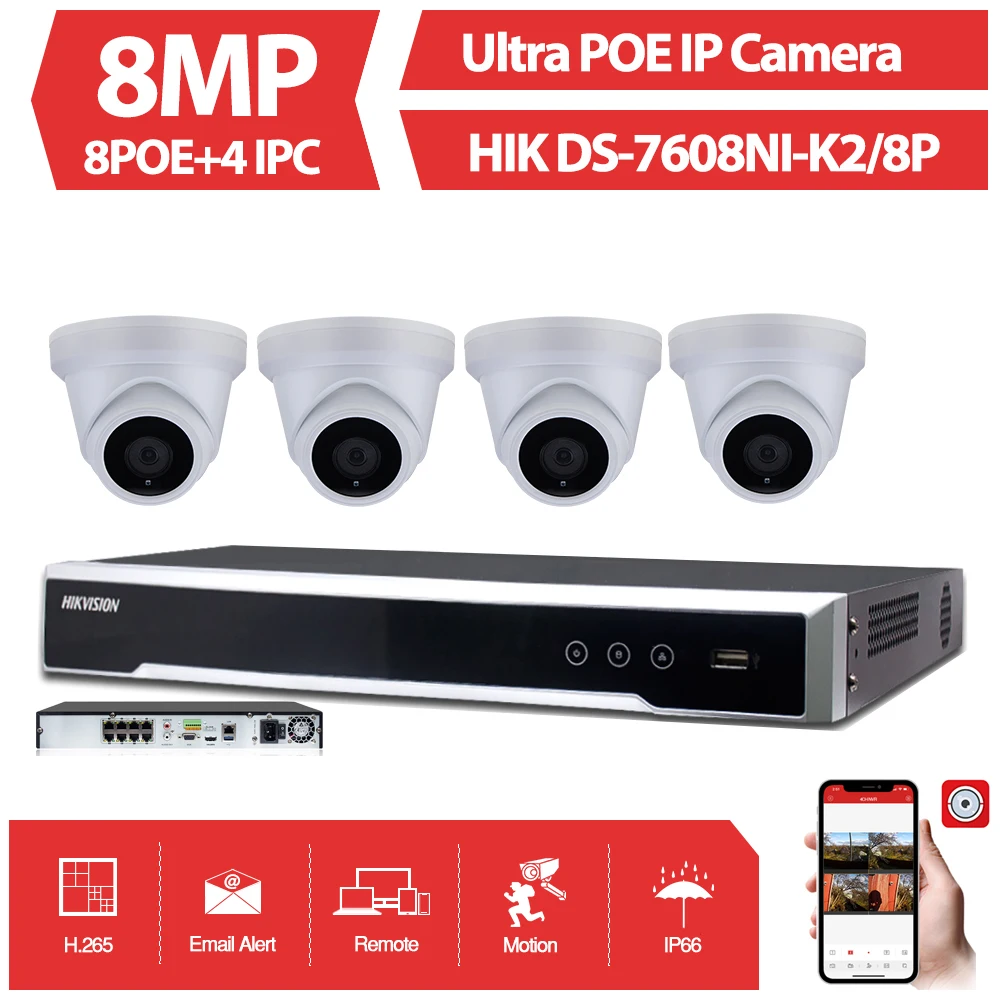 NEW 8CH CCTV System kit Ultra 8MP Outdoor Security POE Camera with Hikvision 8 POE NVR DS-7608NI-K2