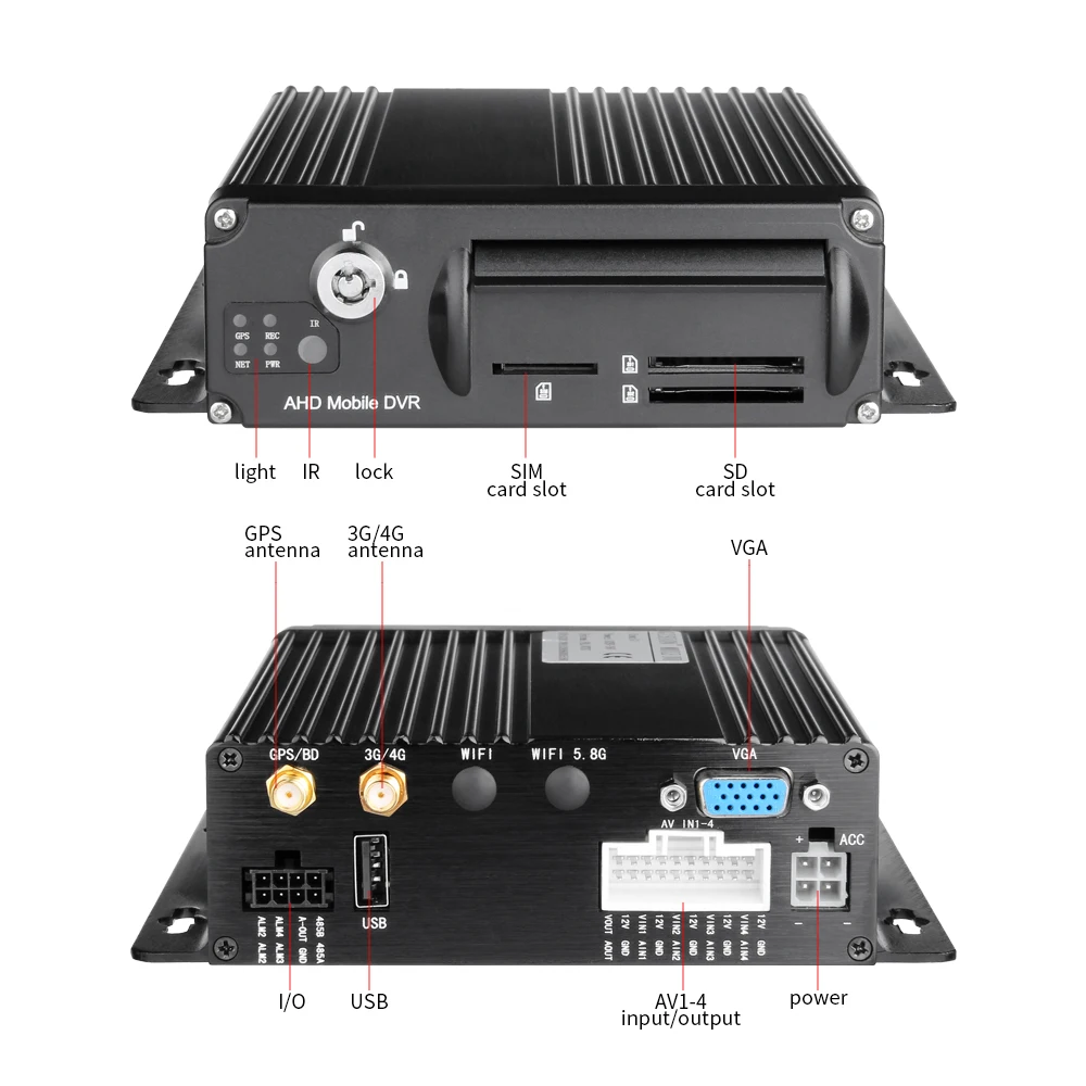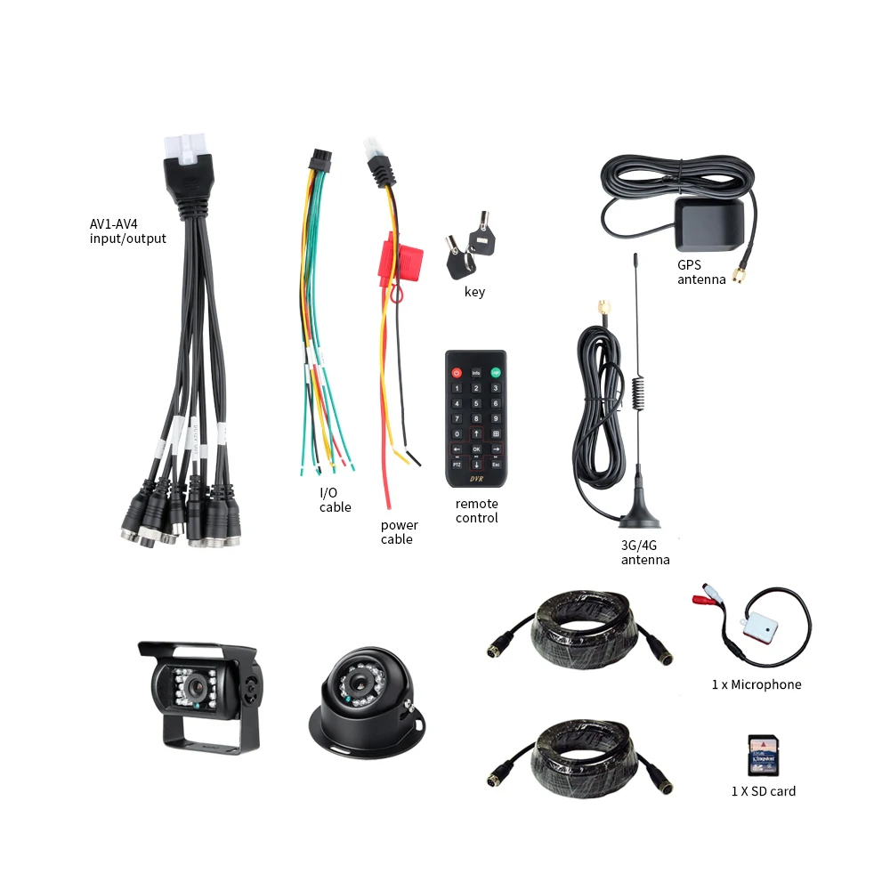 4CH 1080P SD Card Mobile Truck DVR Kit 4G LTE GPS Positioning with 2.0MP Front/Rear View Waterproof