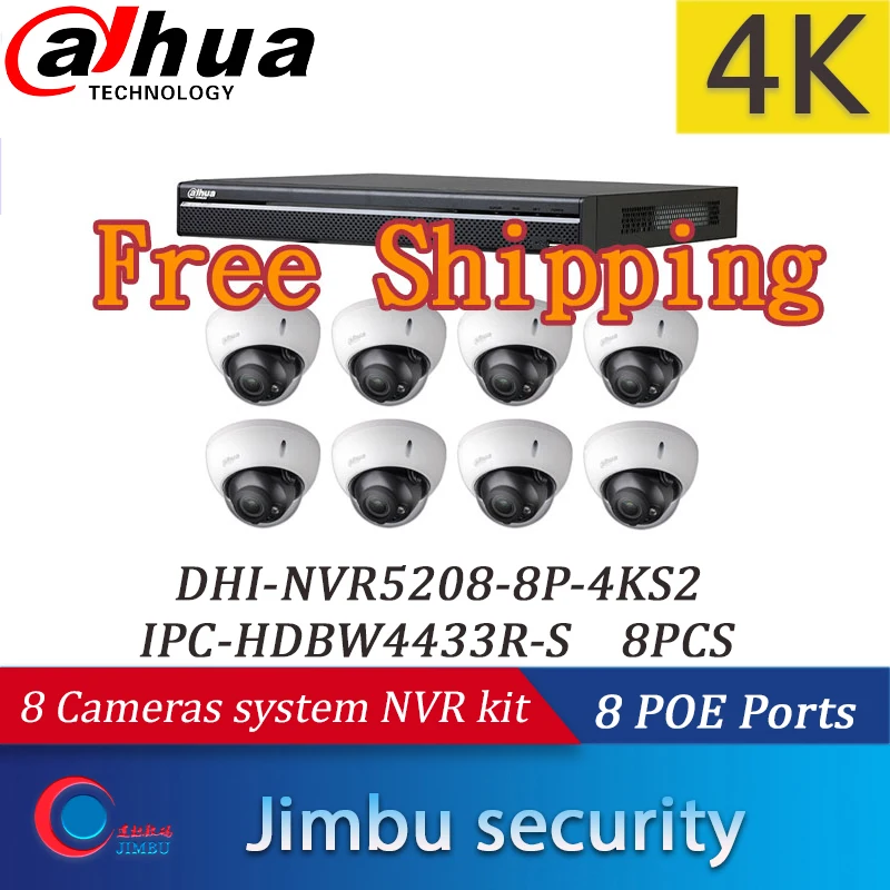 dahua cctv camera system DHI-NVR5208-8P-4KS2 Mult language indoor network camera IPC-HDBW4433R-S 8P