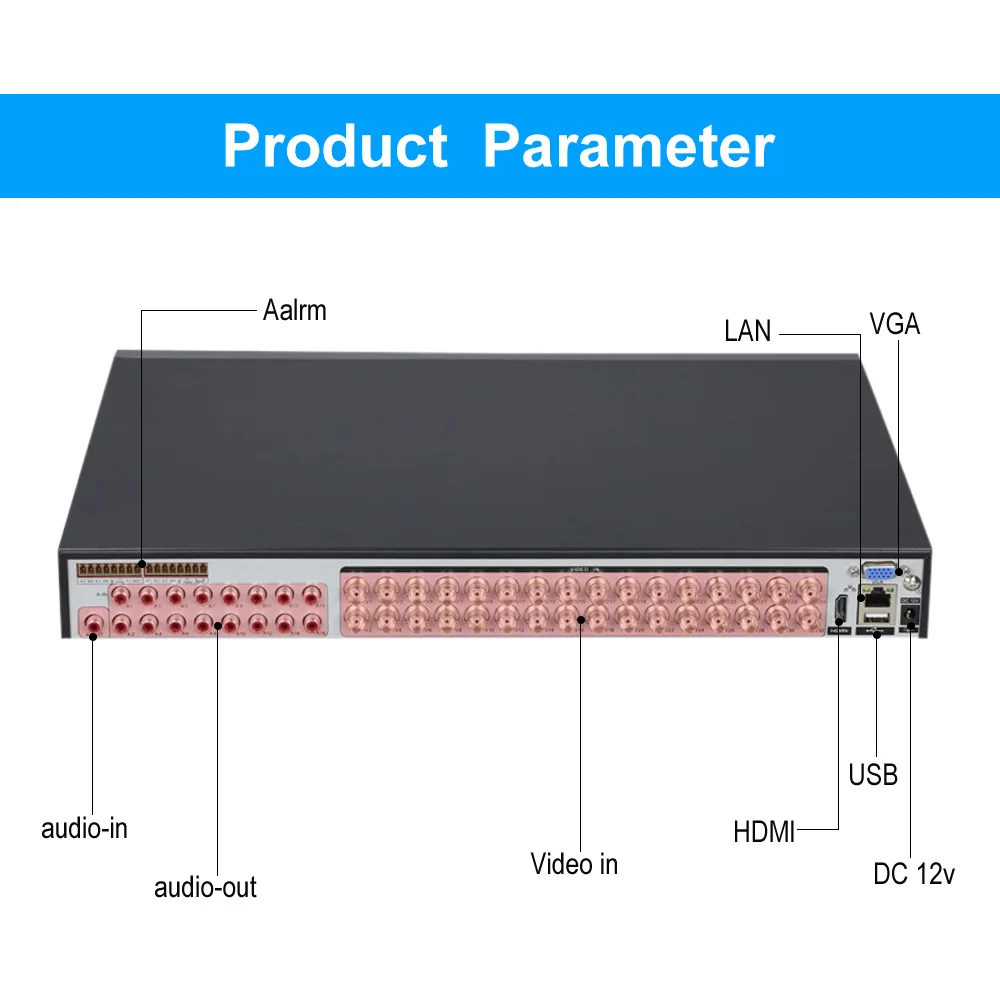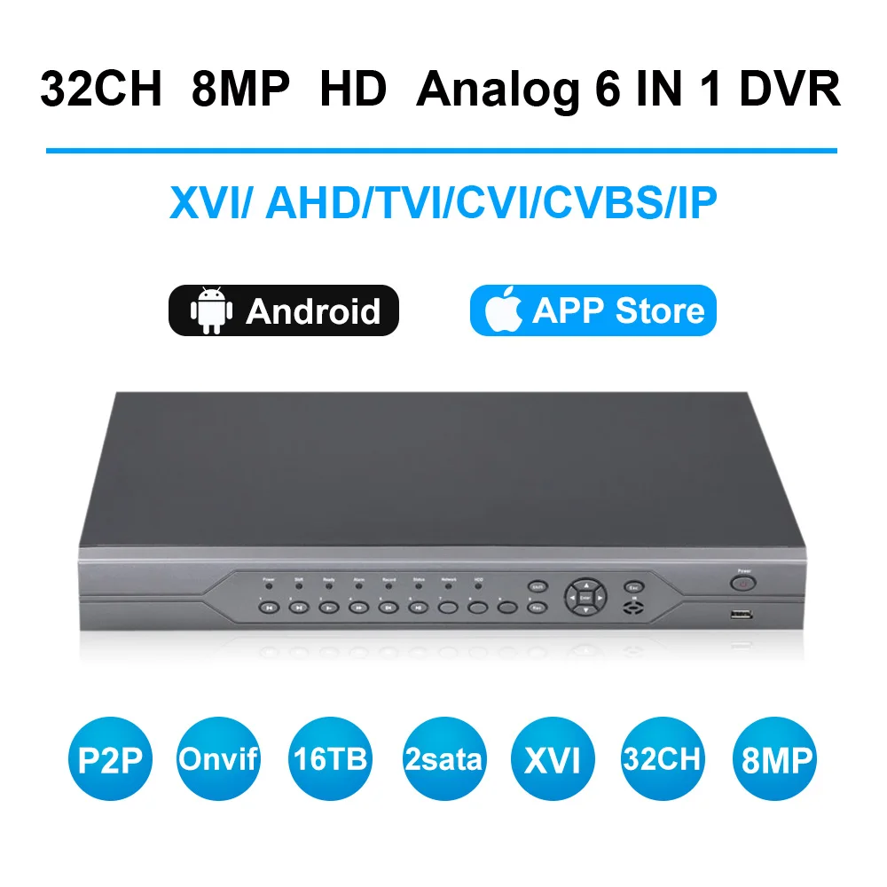 HD CCTV 5MP 16 / 32 Channel AHD DVR H.265 CVI TVI Analog IP Camera NVR 4K HDMI VIDEO P2P ONVIF Digi