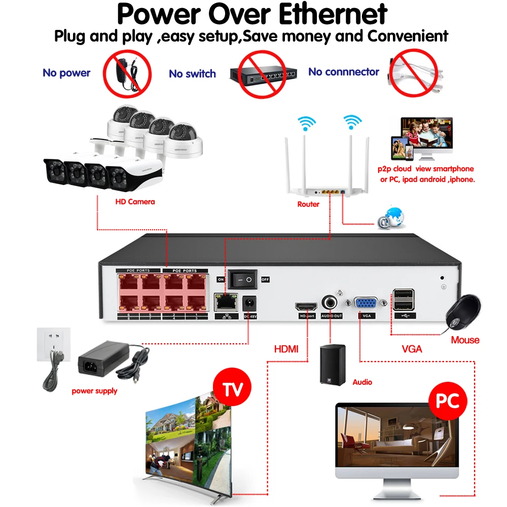 TOP Home office supermarket 8CH PoE Kit Surveillance System PoE Camera 5.0MP CCTV System 8PCS 4.0MP PoE