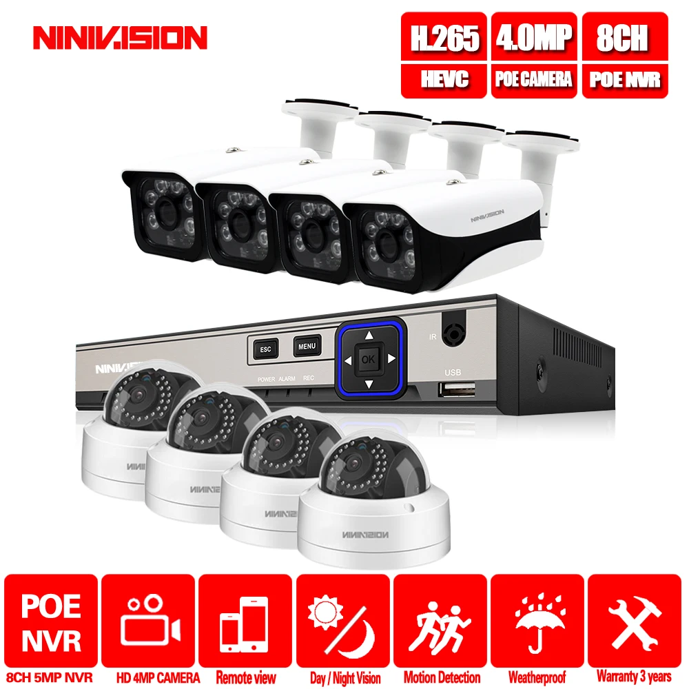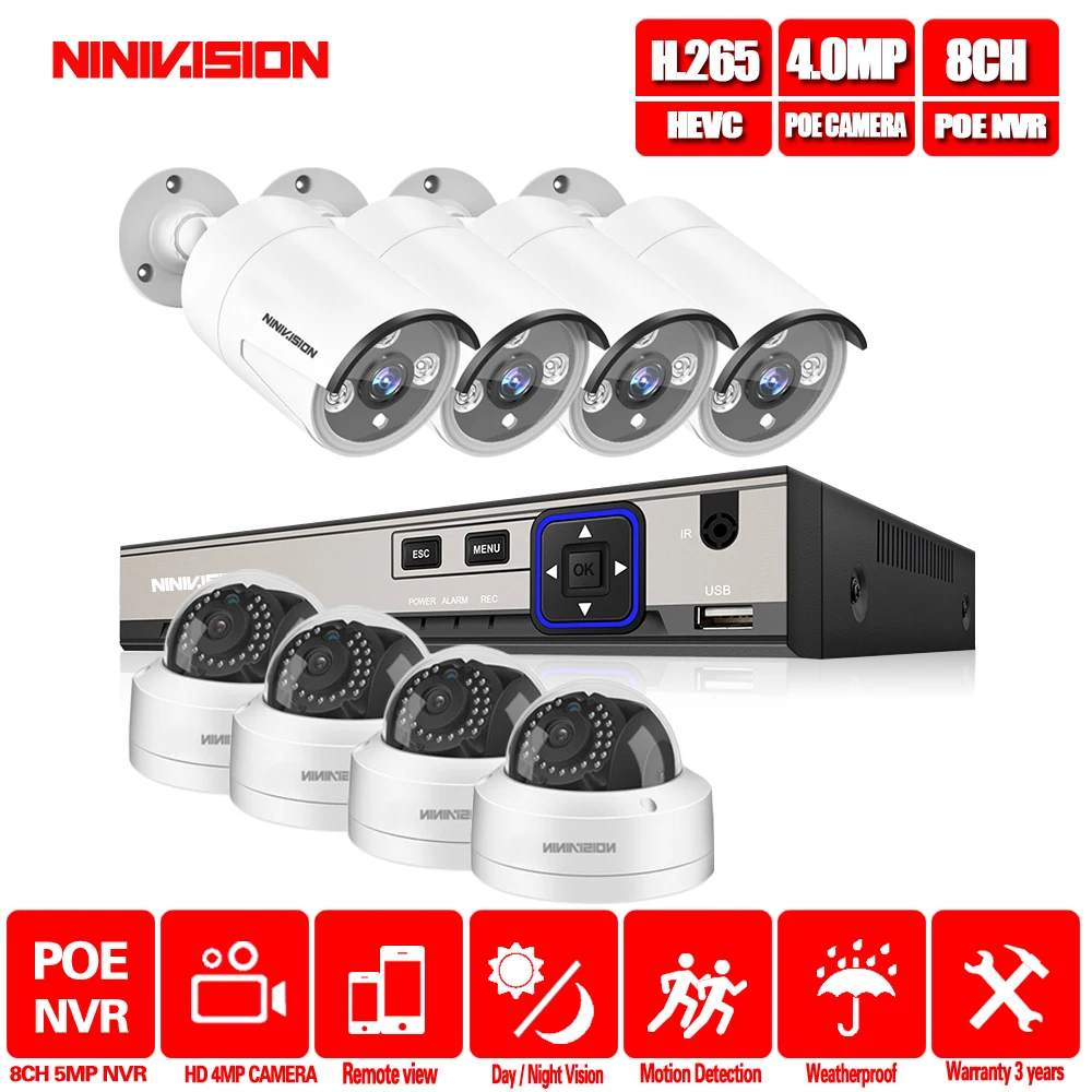 Home office supermarket 8CH PoE Kit Surveillance System PoE Camera 5.0MP CCTV System 8PCS 4.0MP PoE