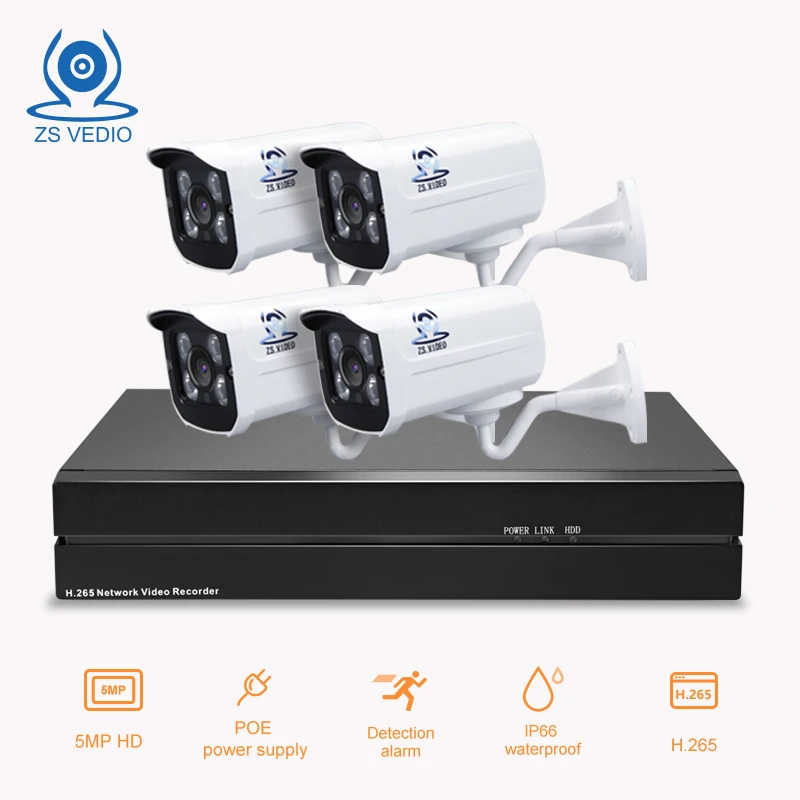 ZSVIDEO Surveillance System Security Camera POE Home Outdoor Motion 5MP Infrared Night Vision H.265