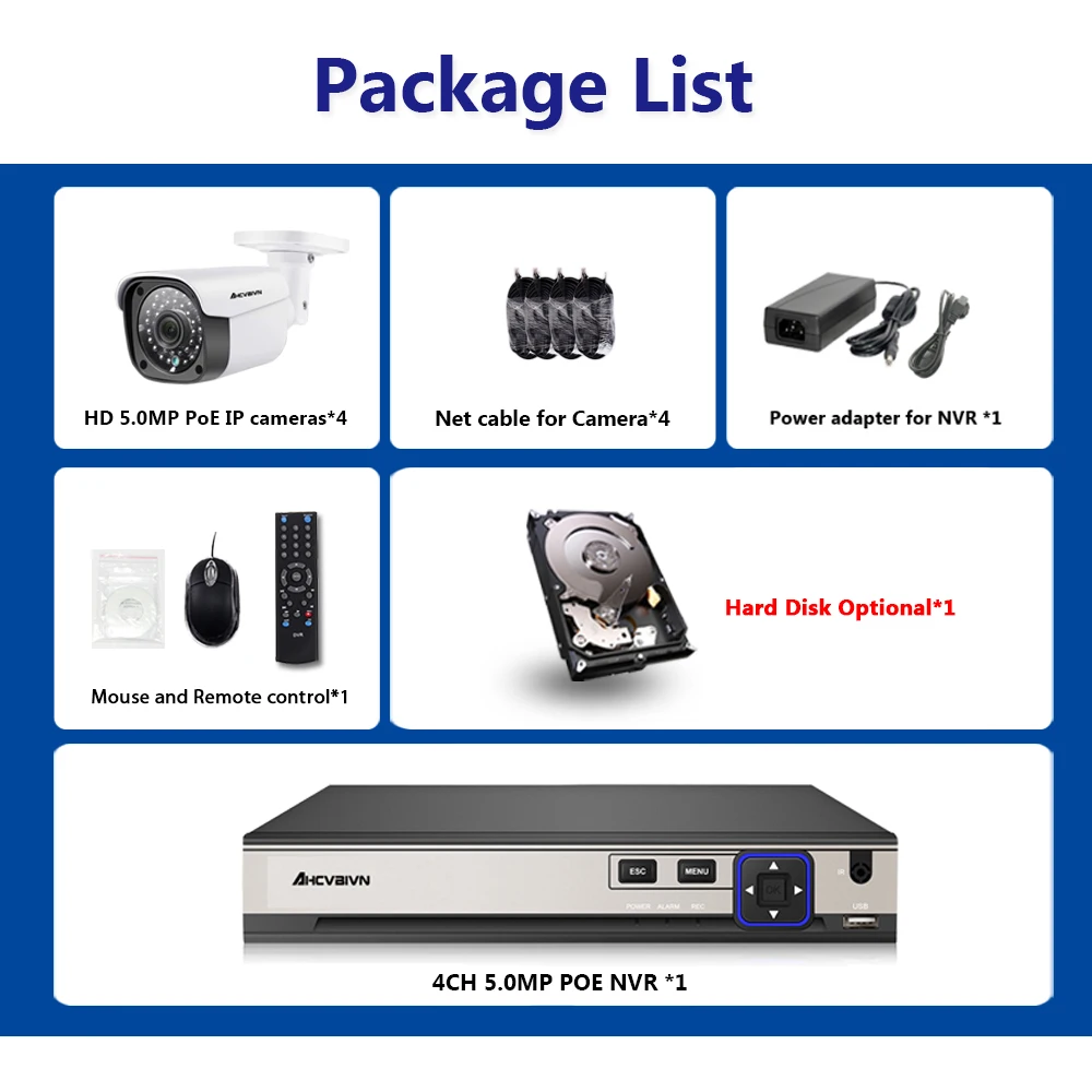 Review HD H.265 5MP POE 48V Security IP Camera CCTV System NVR 4CH HD 5.0MP IP Camera Outdoor Day/Night Vi