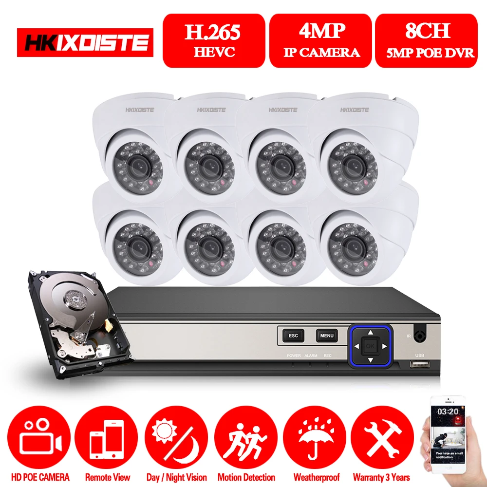 ORIGINAL HKIXDISTE HD 8CH NVR 5.0MP POE CCTV Camera System Kit 4MP White Dome IP Camera POE Home Security Vi