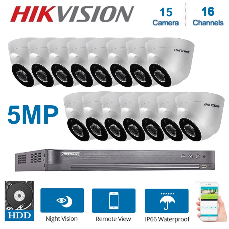 Network Hikvision 16Channels DVR Video Surveillance Kits with 15PCS 5MP Camera Security Night Visio
