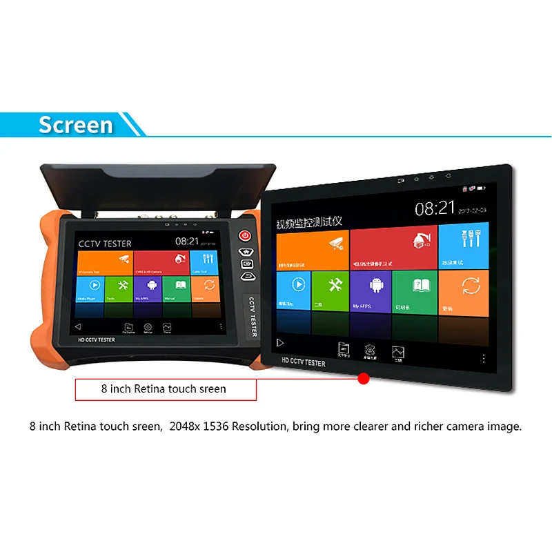 X9-Adhs Cctv Camera Tester 8-Inch Ips Press Screen 2048X1536 Monitor 4K Cctv Tester with Cvbs/Hdtvi