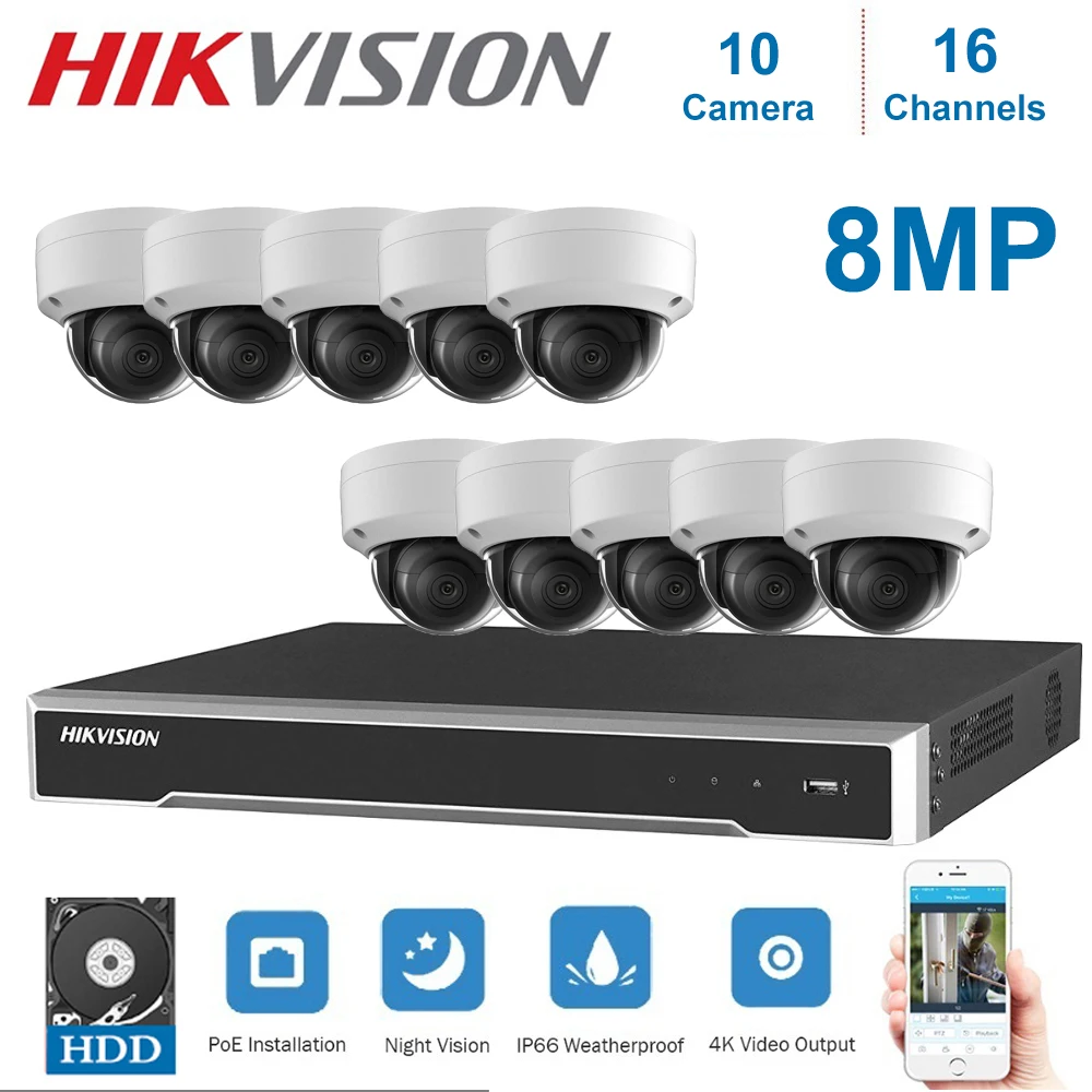 16CH Hikvision POE NVR Surveillance with 10pcs 8MP IP Camera Network Security Night Vision CCTV Sec