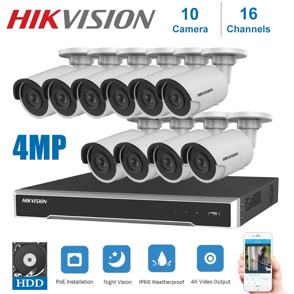 REVIEW TOP SELLER 4K Netwerk Hikvision 16 Kanalen POE NVR Video Surveillance Met 10 Pcs Ip Camera Beveiliging Nachtzi