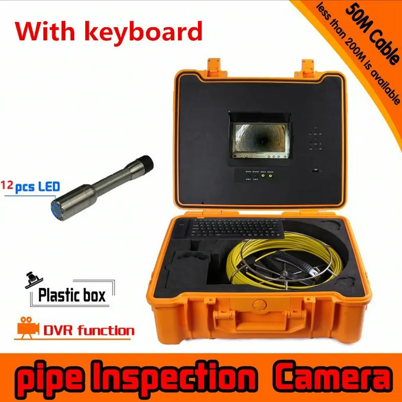 50M Cable Pipeline Sewer Inspection Camera With Keyboard DVR Function Endoscope CMOS Lens Waterproo