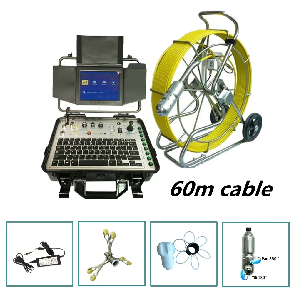 50mm sewerage / drain pipe / borehole inspection camera 360 degree pan tilt video with 60m Fibregla