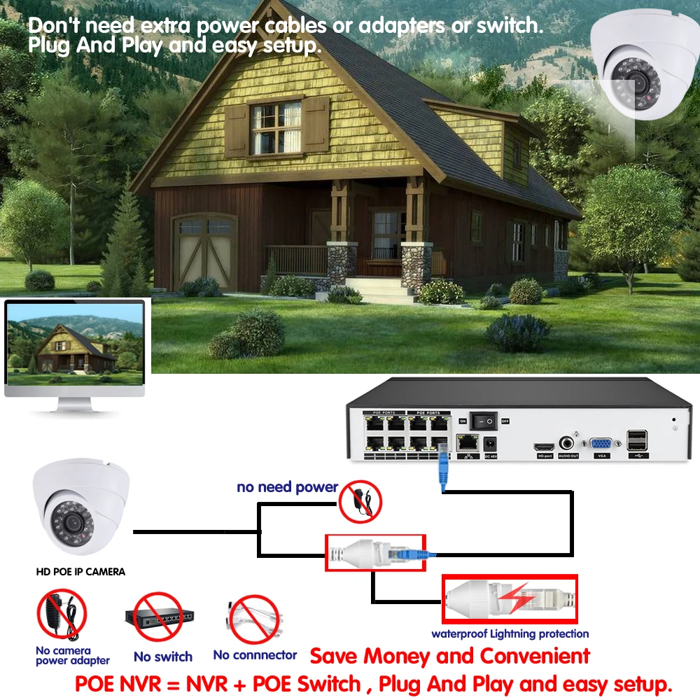 HIGH QUALITY 8CH 5MP POE 48V Real NVR kit 1080P HD Vandalproof Dome camera 2MP POE IP Camera IR 30M POE CCTV Cam
