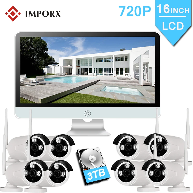 HIGH QUALITY 8CH 720P Wireless Security CCTV IP Camera System NVR With 16 inch LCD Monitor 8PCS Camara P2P Wifi