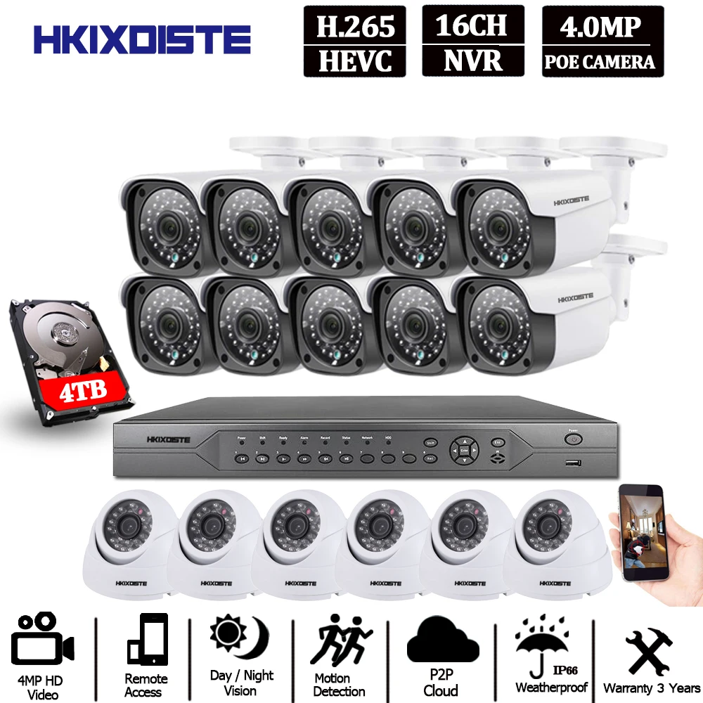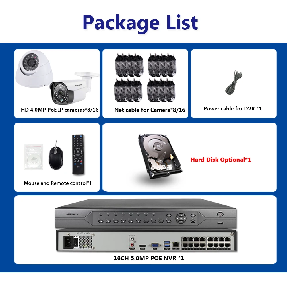 H.265 POE NVR 16CH 5MP CCTV systems nvr 4k ultra hd Waterproof 4.0MP Security IP Camera P2P Video S