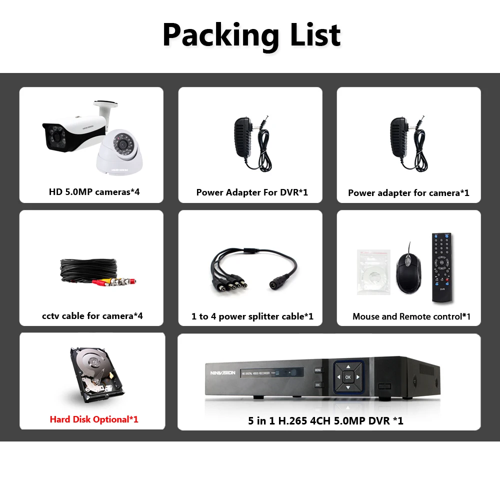 HD-AHD 4CH 5.0MP Security Cameras System Kit with 4*5.0MP Day Night Vision CCTV Home Security Camer