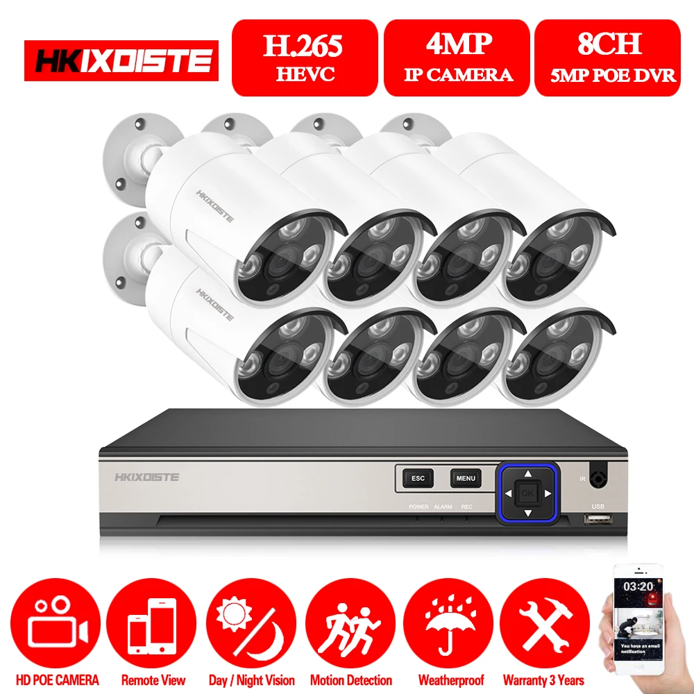 BEST HKIXDISTE 8CH NVR System POE CCTV Camera 5.0MP Kit White Bullet 4MP IP Camera POE Outdoor Security