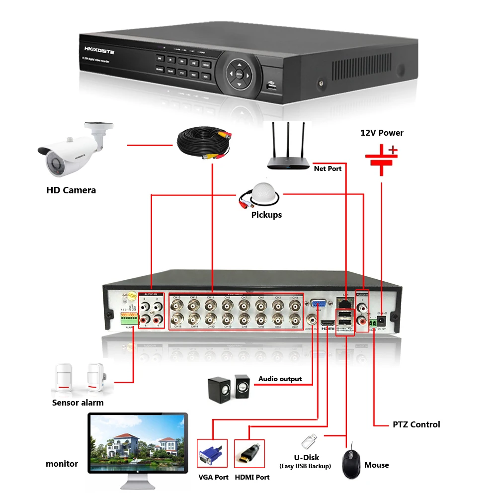 HKIXDISTE HD 16CH CCTV System 16 Channel 1080P DVR 16PCS 2.0MP Bullet Outdoor Home Video Camera Sys