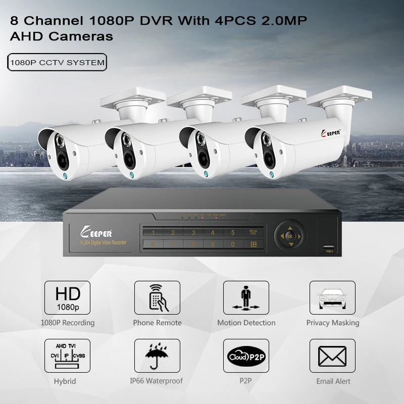 Keeper 8CH 1080P DVR CCTV System 4PCS SONY IMX323 Outdoor Weatherproof Security Camera Day/Night Vi