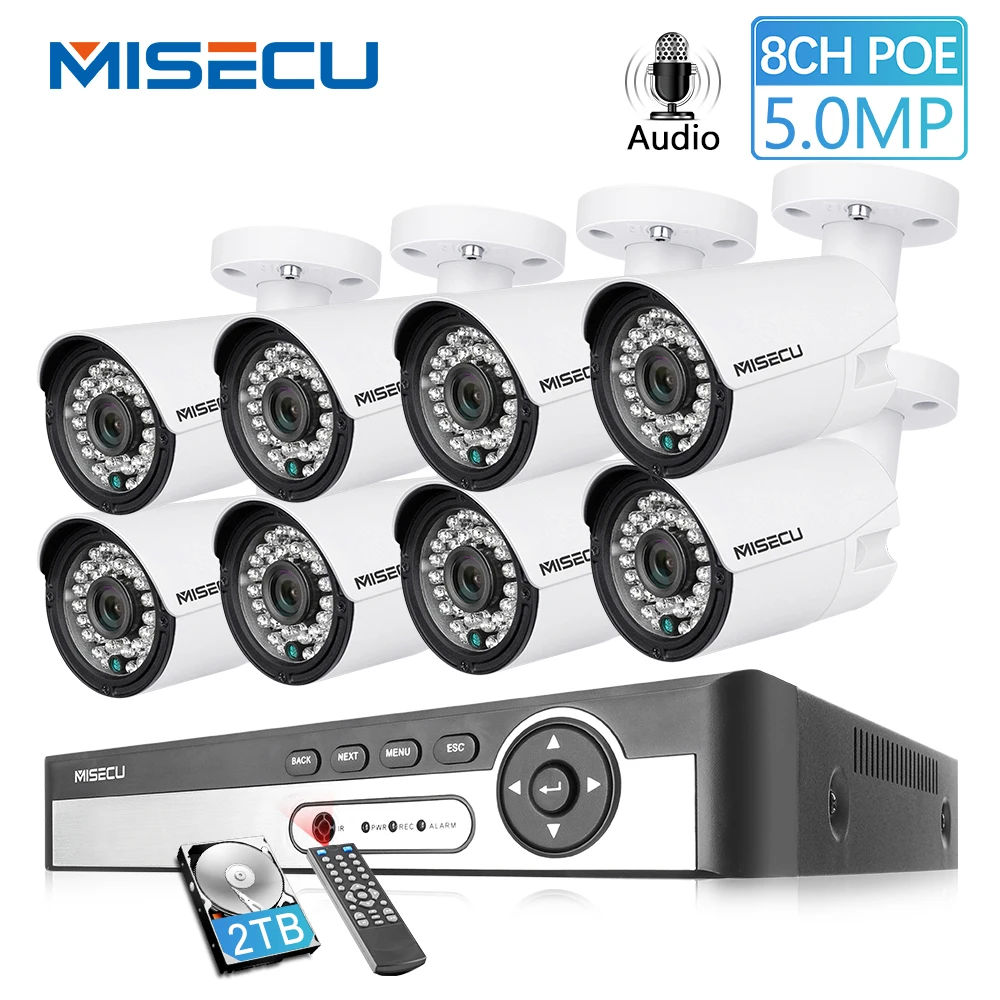 MISECU FHD 5MP POE Kit H.265 CCTV Security Up to 16CH NVR Outdoor Waterproof IP Camera Audio P2P Su