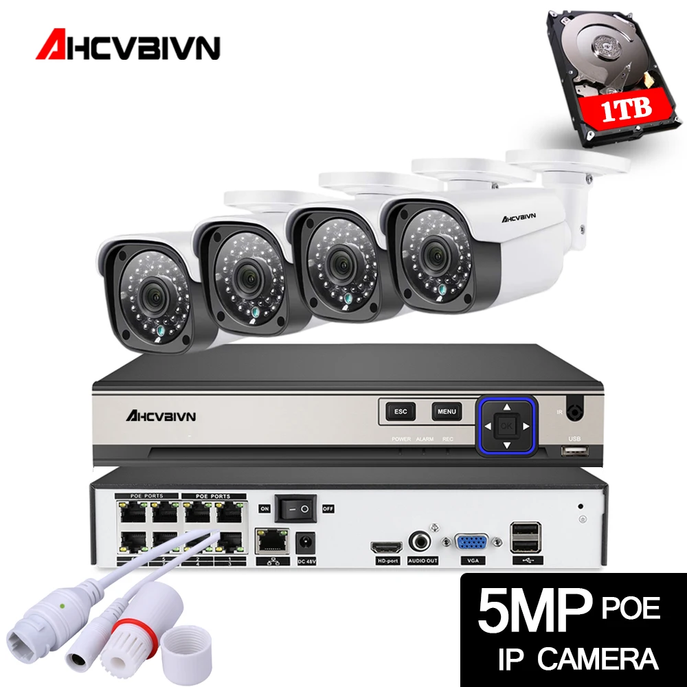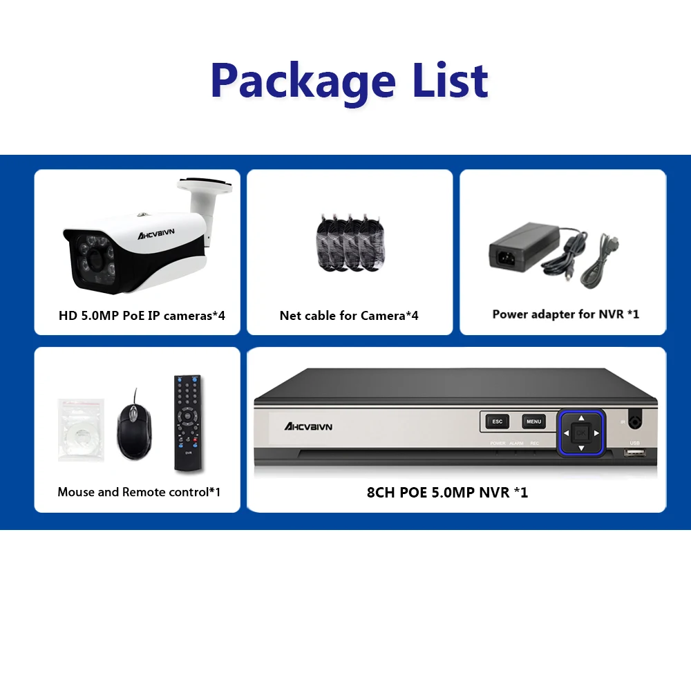 BEST SELLER HD H.265 5.0MP POE Security NVR CCTV System 8CH NVR With 2592*1944 IP Camera Outdoor Day/Night Wate