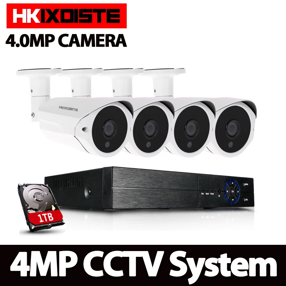 BEST QUALITY HKIXDISTE 4CH 4.0MP AHD DVR CCTV System 4MP IR Night Vision Indoor Outdoor Camera Home Security Vid