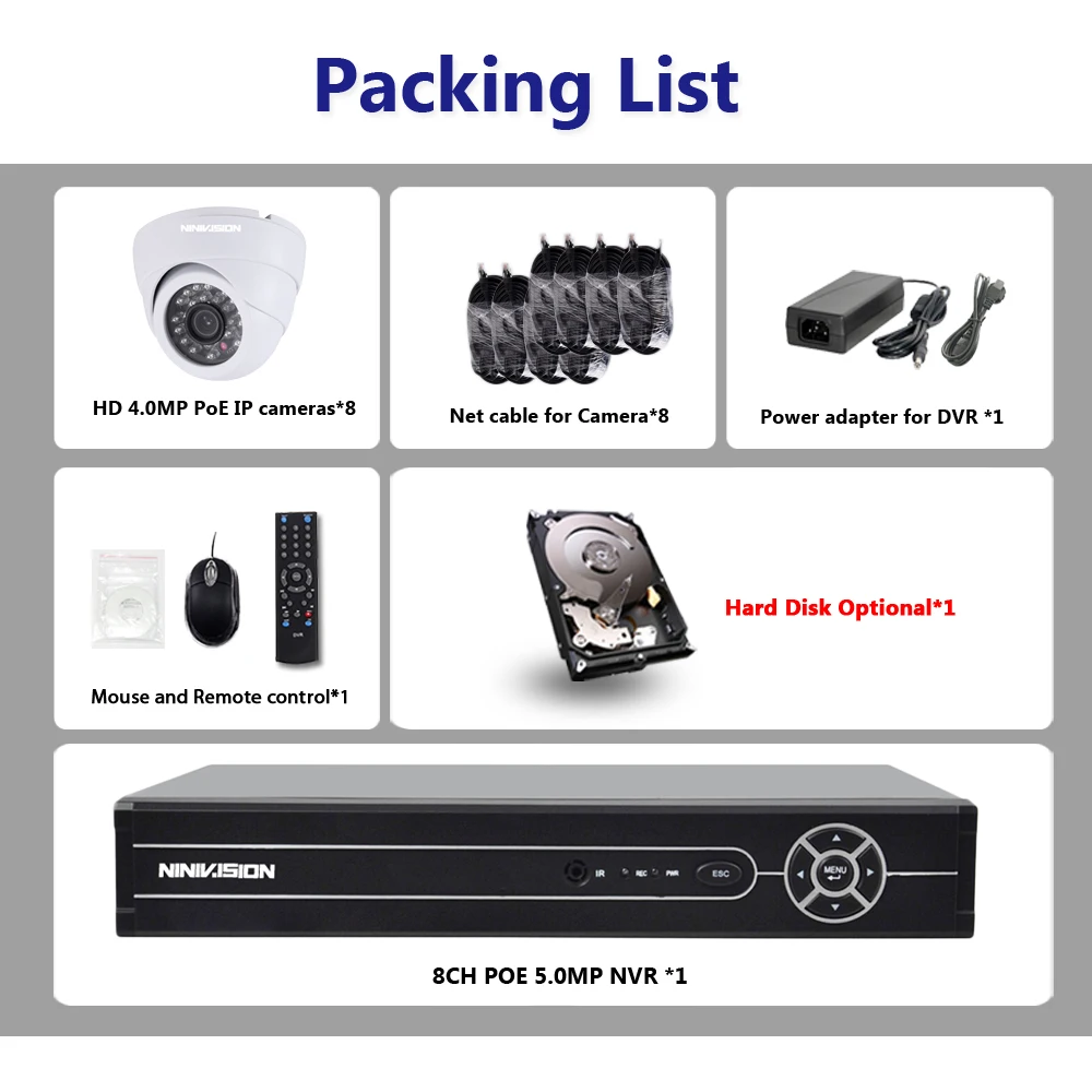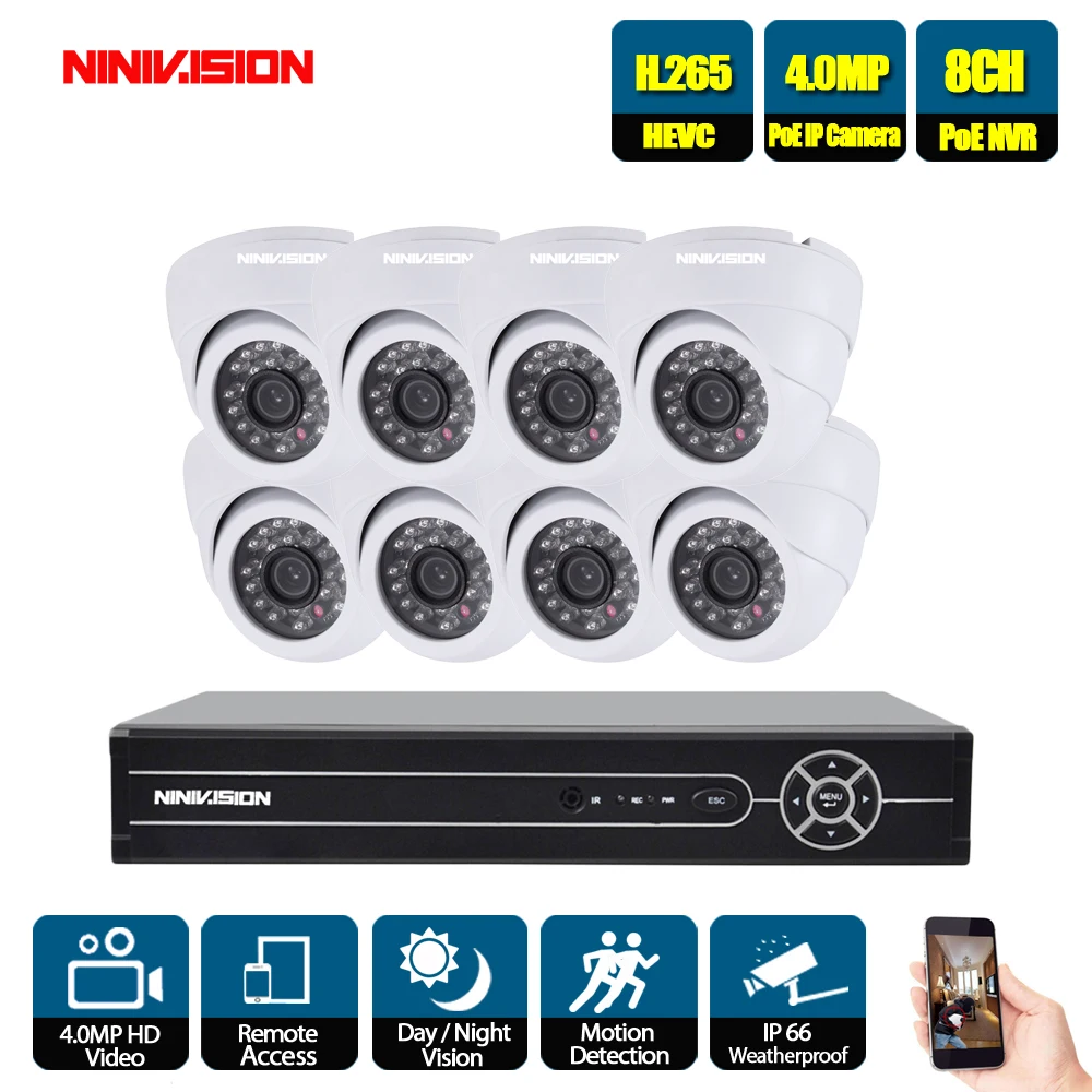 Best NINIVISION 8CH Network PoE Video Surveillance System 8pcs 4.0MP Outdoor Indoor White Dome IP Camera