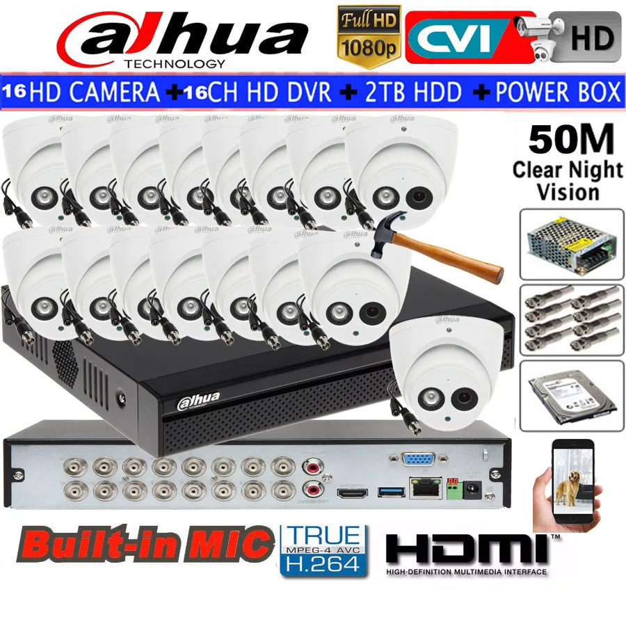 Dahua 2MP IR HDCVI Dome camera Built-inMic HDW1200EMP-A Security camera 16CH HCVR5116HS-S3 CCTV cam
