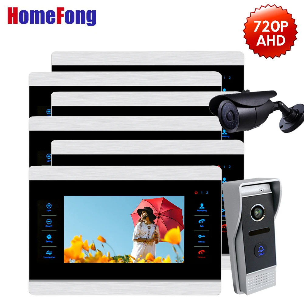 HIGH QUALITY Homefong 7 Inch AHD 720P Video Doorbell Video Intercom Kit for a Private House 6 Monitors 1 Outdoor