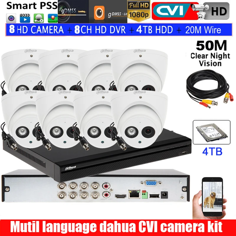 mutil language CCTV camera Built-in Mic HAC-HDW1200EMP-A CVI Dome camera 8CH XVR5108HS-X Dome camer