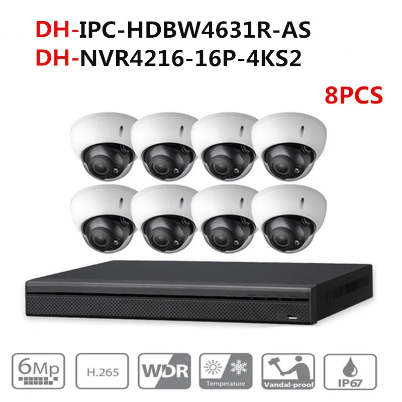 BEST QUALITY DH CCTV Camera Security System Kit 8PCS 6MP IP Camera IPC-HDBW4631R-AS & 16POE 4K NVR NVR4216-16P-4