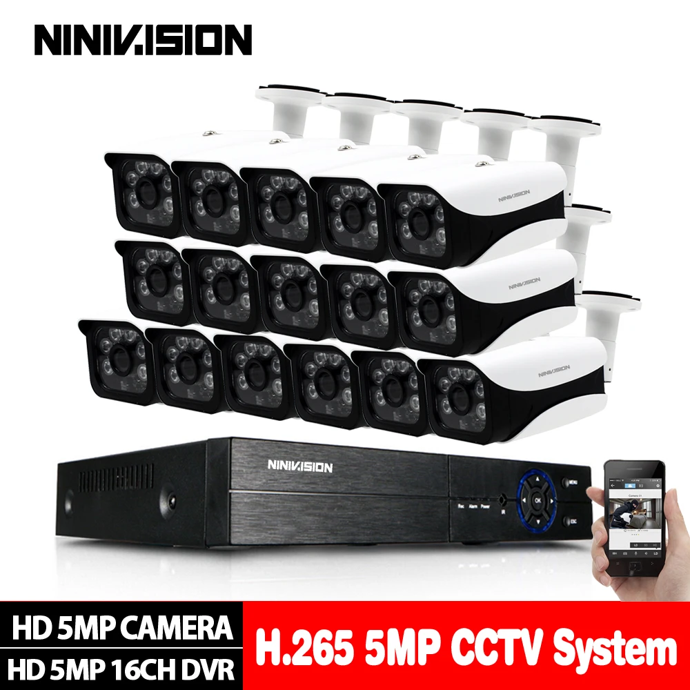 HD 5MP 16CH H.265 Video Surveillance 16PCS Cameras Security Camera Set For CCTV Outdoor Surveillanc