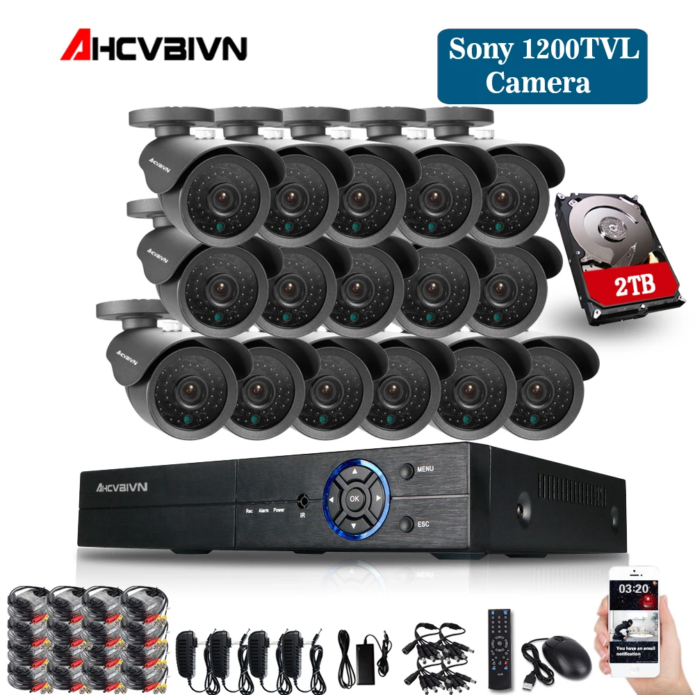 Home 16pcs AHD 1080p 960H 1200TVL 1.0MP CCTV security Camera System 16channel AHD DVR Kit HDMI 1080