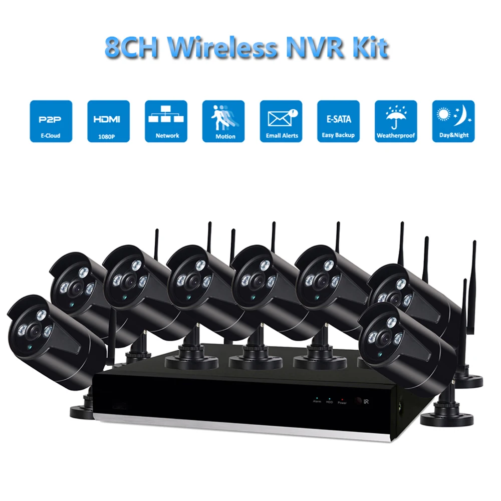 PUAroom 8CH IP Full HD 1080P network surveillance camera with IR-Cut H.264 NVR Best Wireless CCTV C
