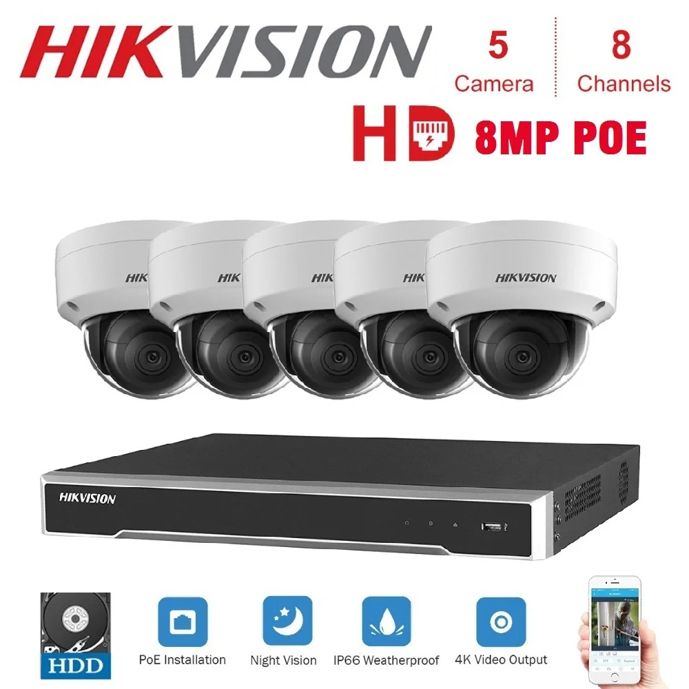 8CH Hikvision POE NVR Video Surveillance Kits with 5pcs 8MP IP Camera Network Security Night Vision