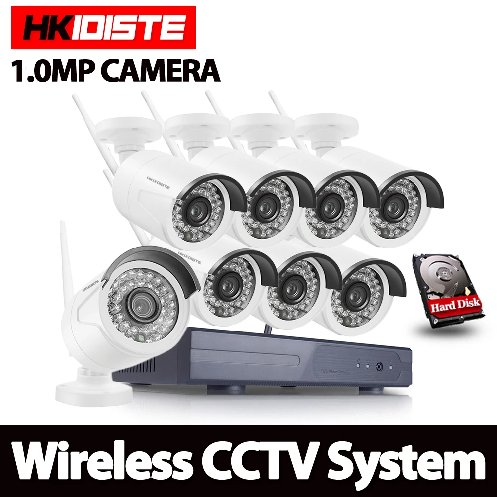 Hot Sale HKIXDISTE 8CH Security 1080P Wireless NVR Kit P2P 720P HD Outdoor IR Night Vision IP Camera WIFI CC