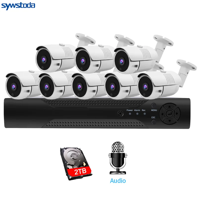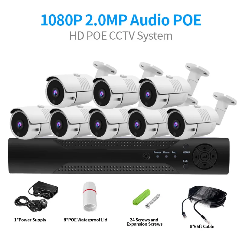 8CH 1080P CCTV System Audio Record 2MP PoE kit IP Camera Metal Waterproof Night Vision Security Cam