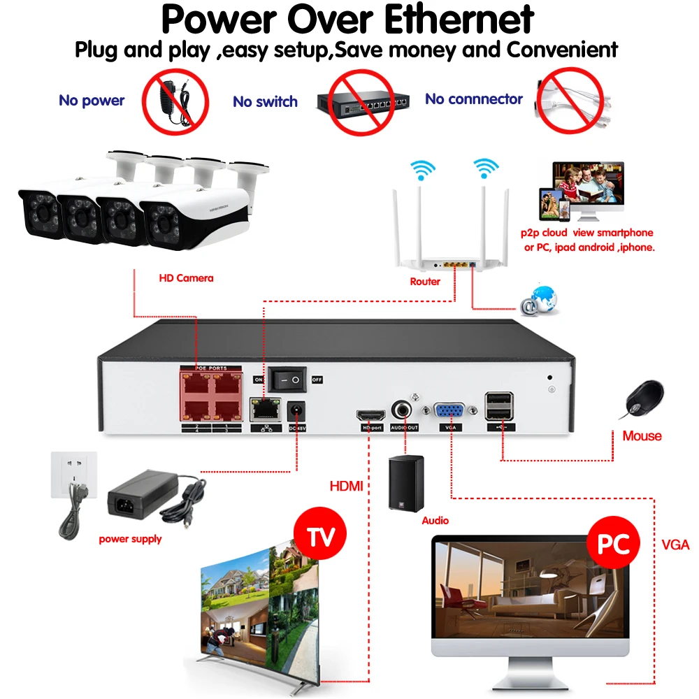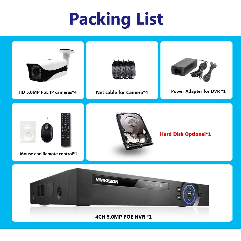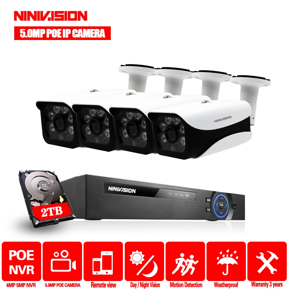 Review Top H.265 8CH 48V 4CH 5MP POE CCTV System 5.0MP IP POE Outdoor Waterproof Metal Camera 2560*1920 Video